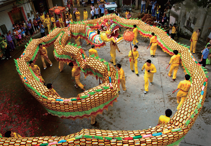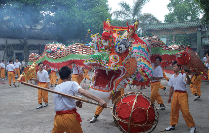 来到佛山市顺德区杏坛镇光华村,这里流传着一种传统民间广场舞蹈——人龙舞,它从清同治十年(1871年)承传至今。